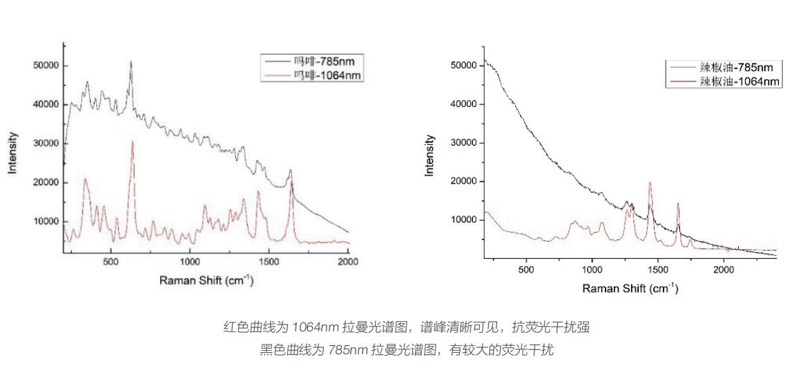 1064nm 手持式拉曼光谱仪可以有效避免荧光干扰现象,现场直接鉴定大多数高荧光物品,鉴定物品种类更加丰富与准确。