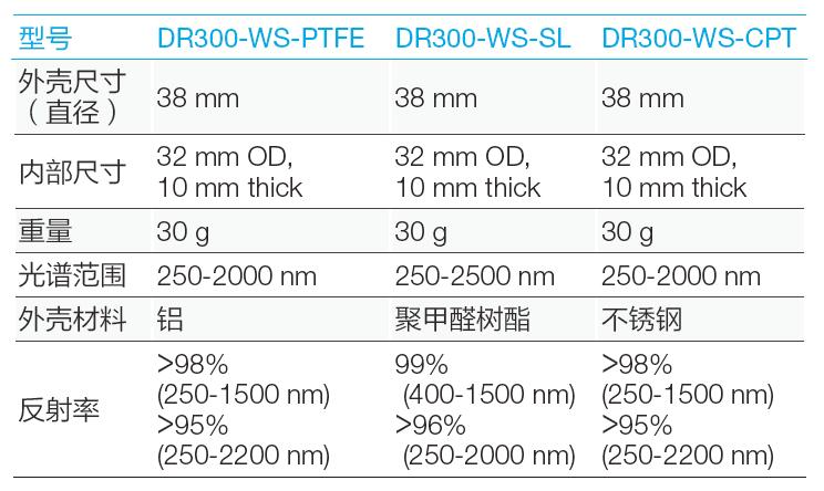 DR300-WS-SL 是Labsphere生产的一款标准漫反射白板,材料采用Spectralon。Spectralon 不易沾水,在温度350 ° C 以下都能保持稳定,而且具有耐用性好,精确,可重复性好的特点。与PTFE 材料不同,DR300-WS-SL 被弄脏后仍然能通过清洗、打磨后恢复原有性能。