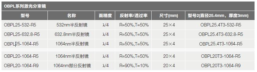 命名规则: OBPL直径-xxx(激光波长)- Rx(反射率百分比代码)
