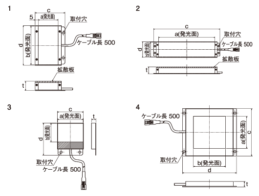 | HDBP-50×50S□ | * | 白·青·緑 | 3.9 | FF | 50 | 50 | 74 | 84 | 8.5 | 60×79 | 4-φ3.5 |