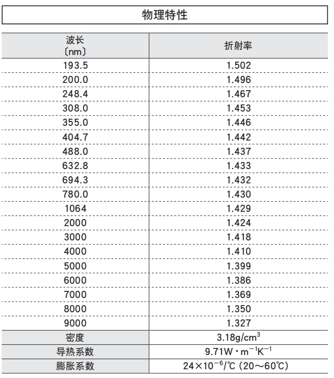 CaF2与其他的晶体相比,湿度的耐久性较高,可以和一般的光学元件一样进行操作。