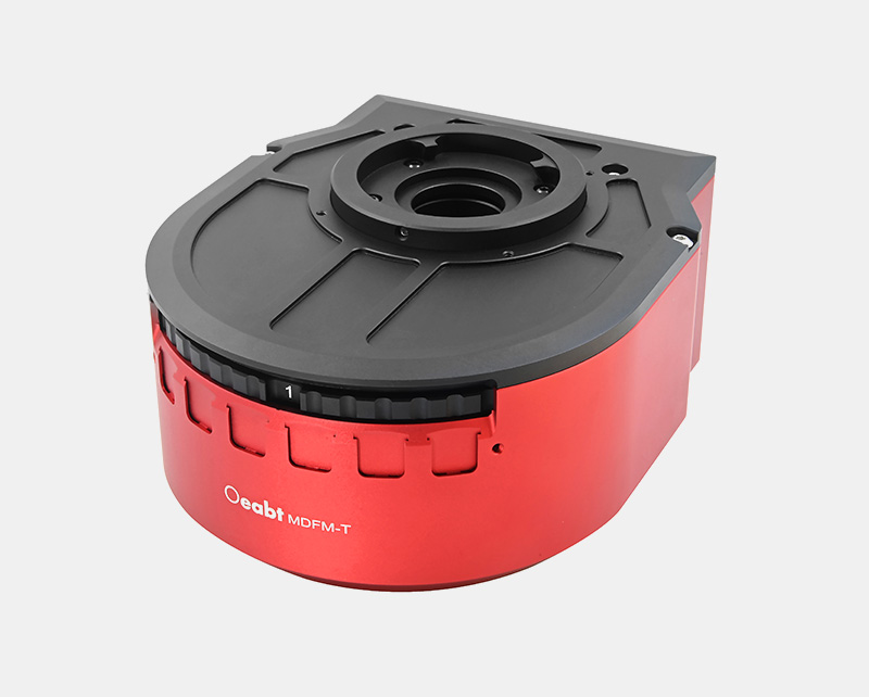 MDFM-T转台有一个可拆卸的旋转转轮,内置3个MDFM-MF2滤光片立方组。在显微系统中,滤光片转盘常用于调整样本的荧光显微镜成像。
