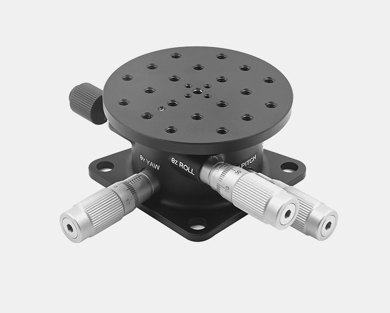 TAP-TR倾斜旋转位移台可实现±4.1°的俯仰、倾斜调节以及±9.5°的旋转调节。便于将光学器件和相应的夹具与平面对准,并能在该平面内进行旋转。