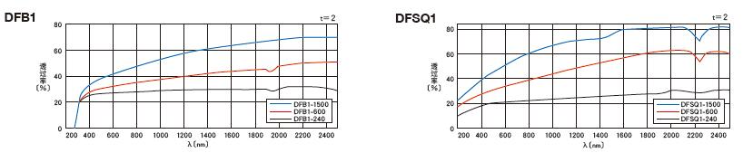 ▶下列透过率的波长特性曲线图是特定测量条件下得到的曲线图,并不代表元件的固有特性。