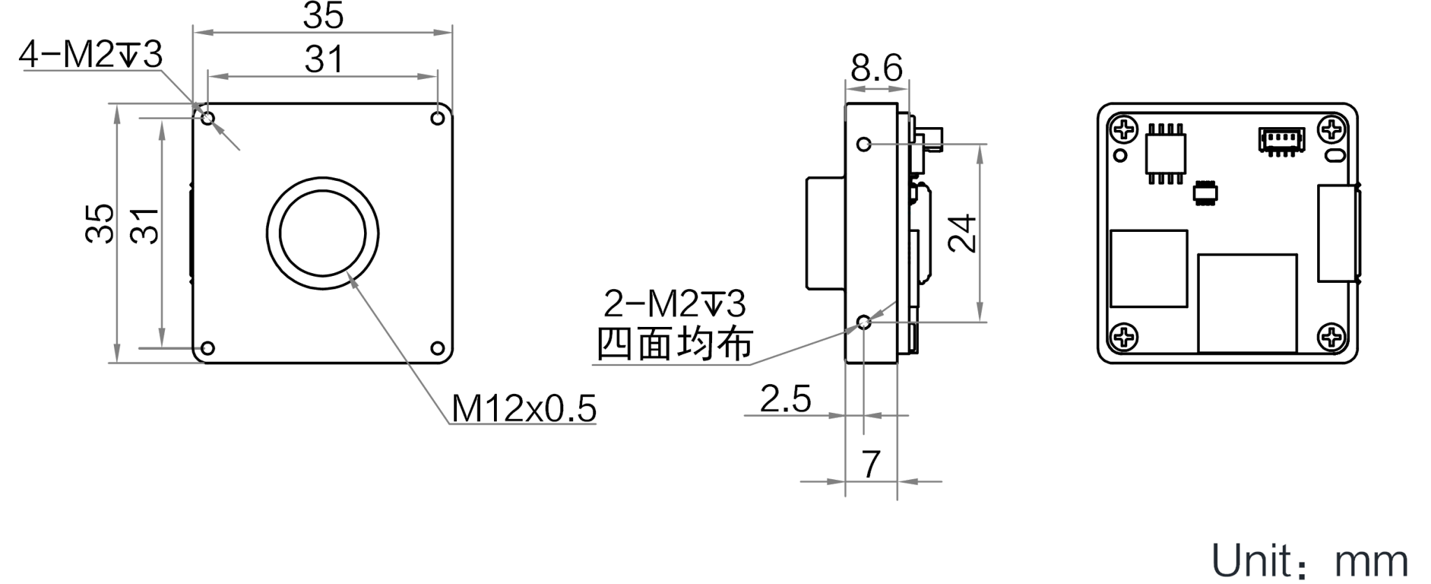 名称 | 1200万像素USB 3.0板级相机,IMX226,黑白,M12口 |