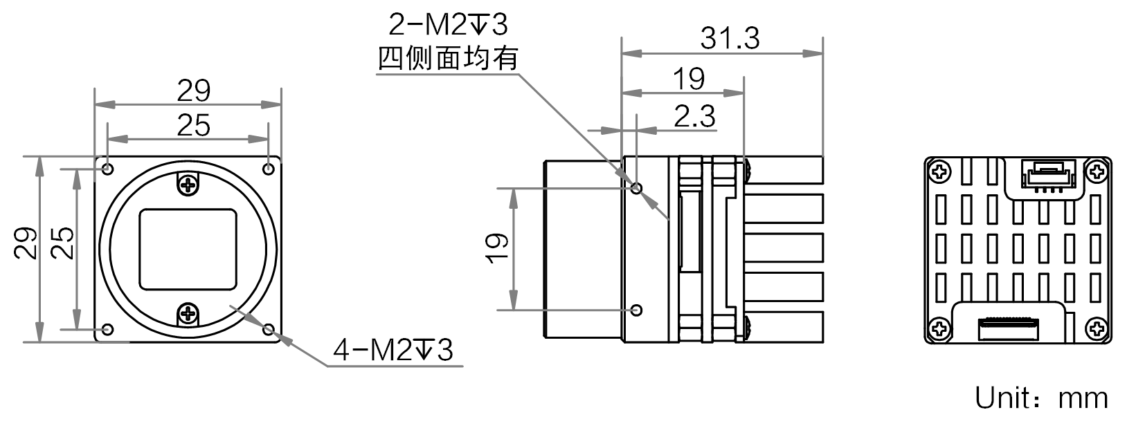 名称 | 500万像素USB 3.0板级相机,IMX250,FPC接口,黑白,C口 |