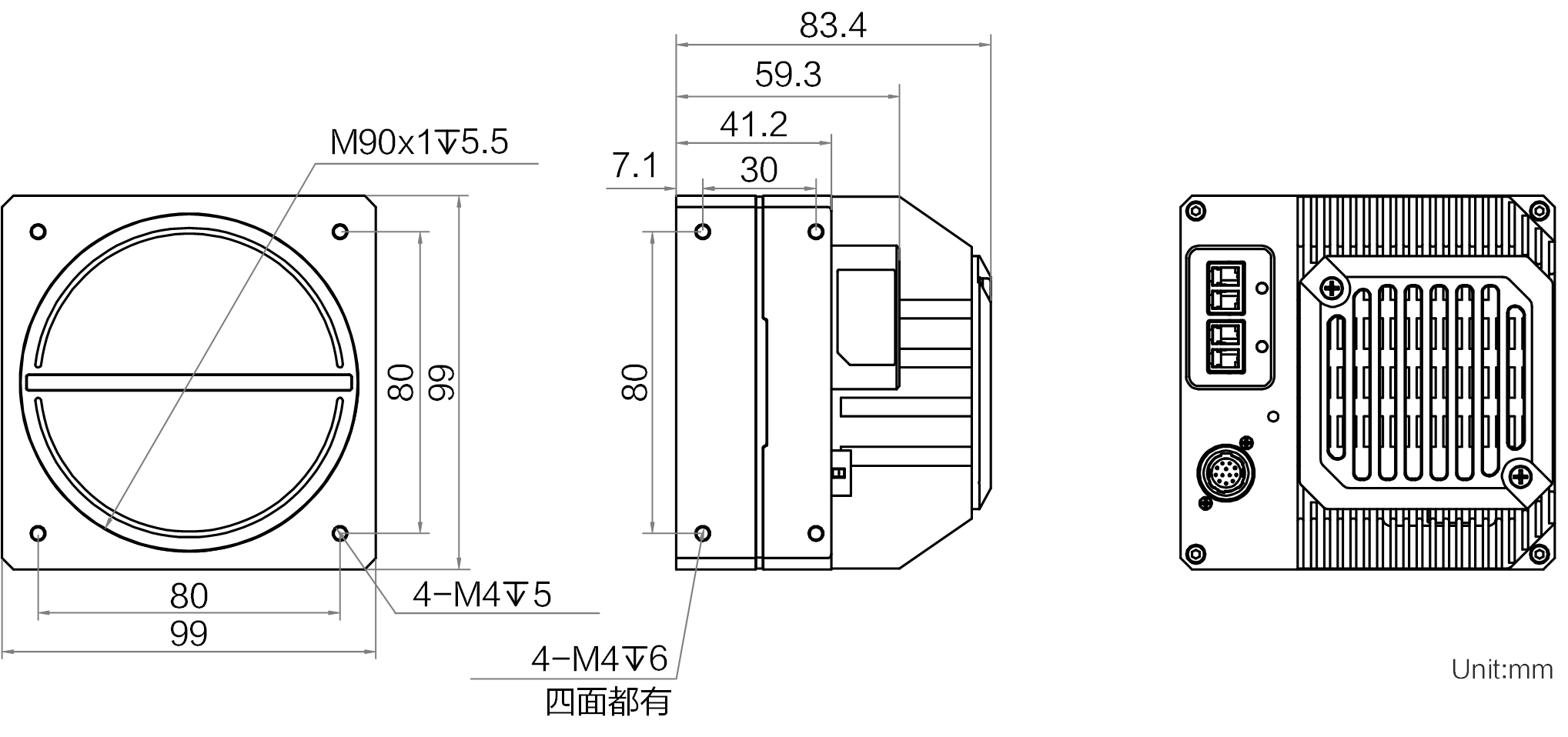 结构 | 镜头接口 | M90*1,法兰后焦12 mm;可通过转接环转接至F口镜头 |