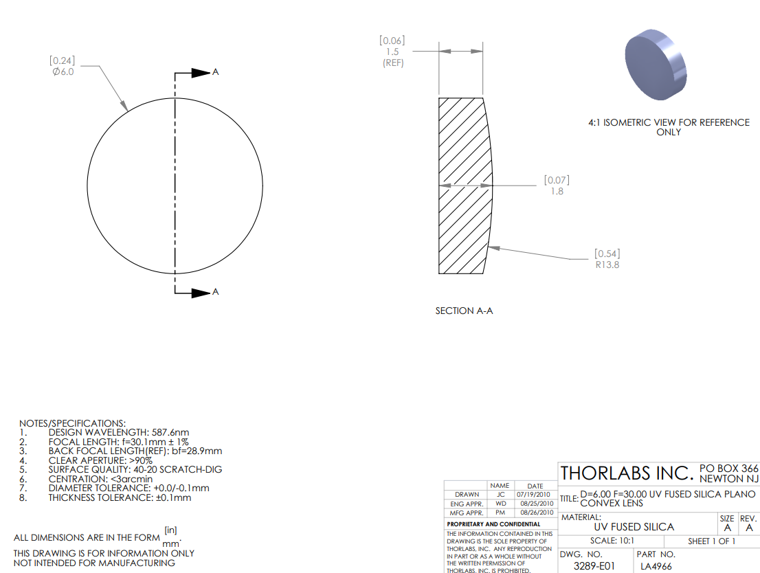 其中,n是折射率,R是透镜表面的曲率半径。这些透镜由阿贝数为67.82的紫外级熔融石英制成;阿贝数是色散指标。