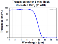 上图为0° AOI下5 mm厚未镀膜CaF2的测量透过率曲线图。
