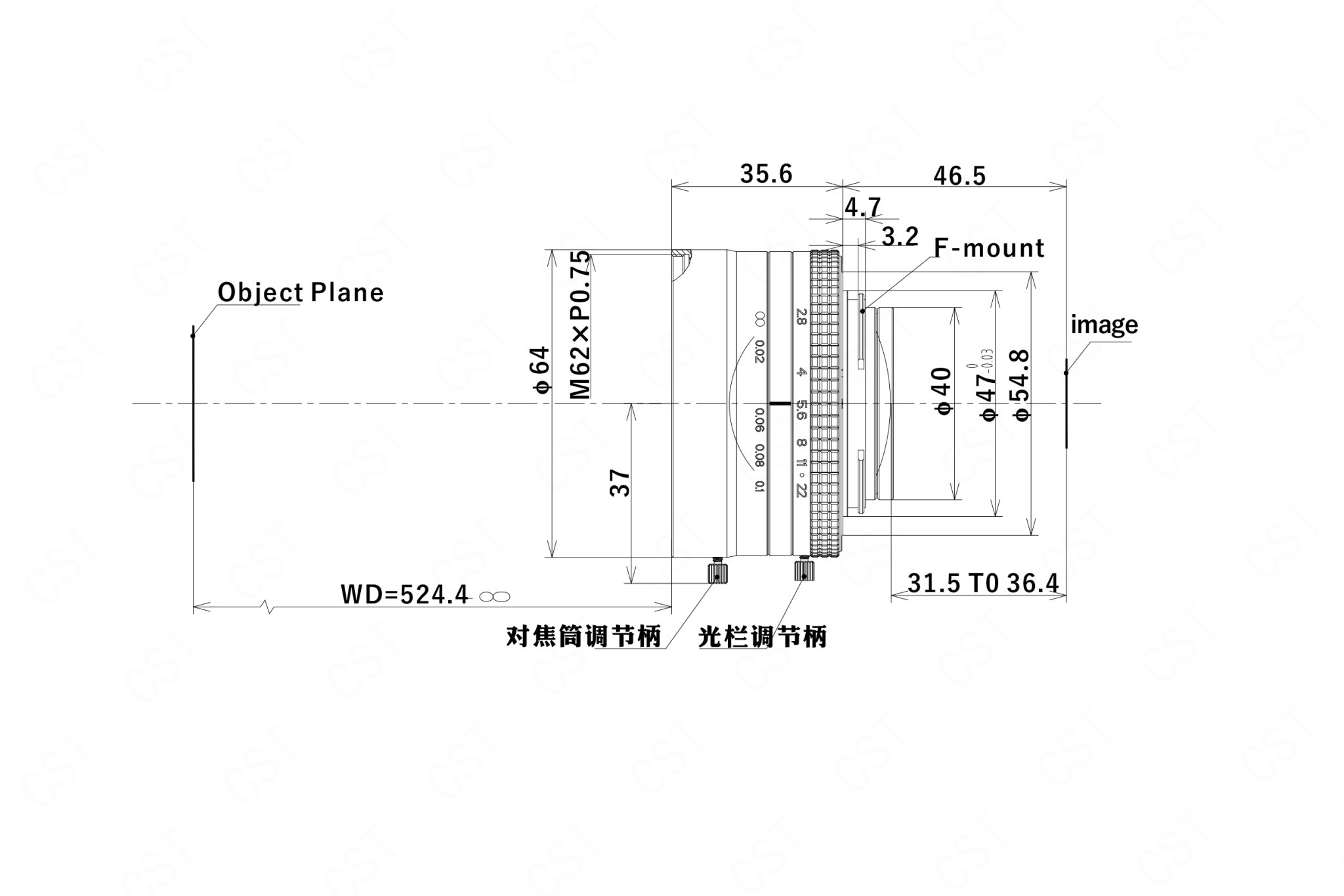 CST 康视达 CST-MF015F35-D45 大靶面F口工业镜头