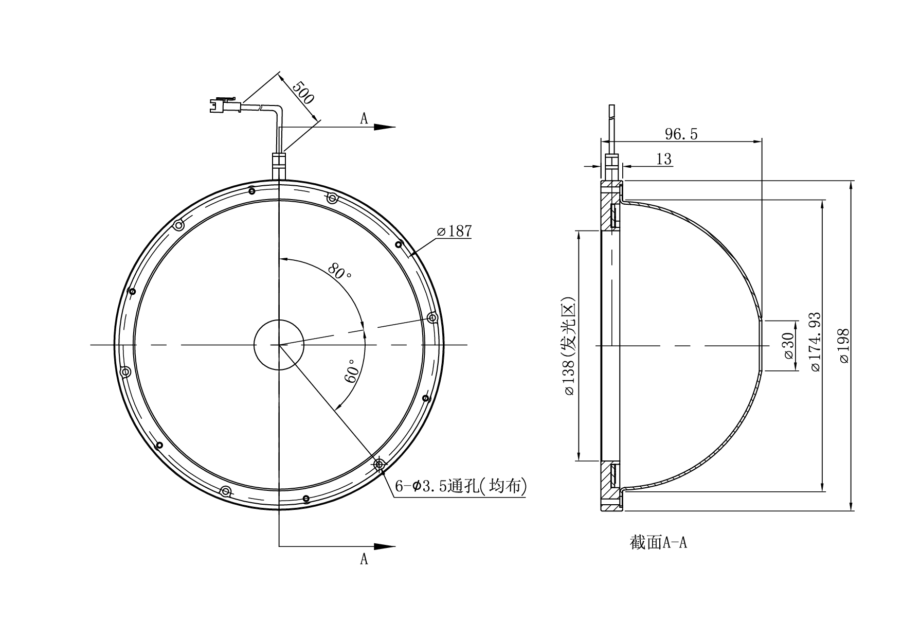 ● 采用半圆形造型及特殊漫射材质,光源更加均匀