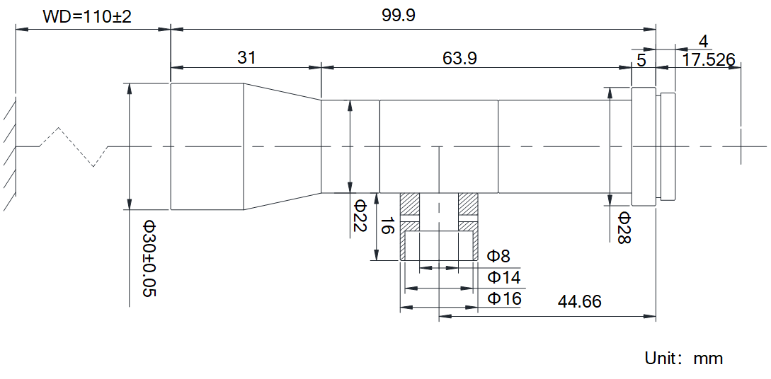 名称 | 110mm工作距,1/2",0.5x,带同轴光接口 |