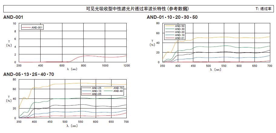 可见光吸收型中性滤光片透过率波长特性(参考数据)