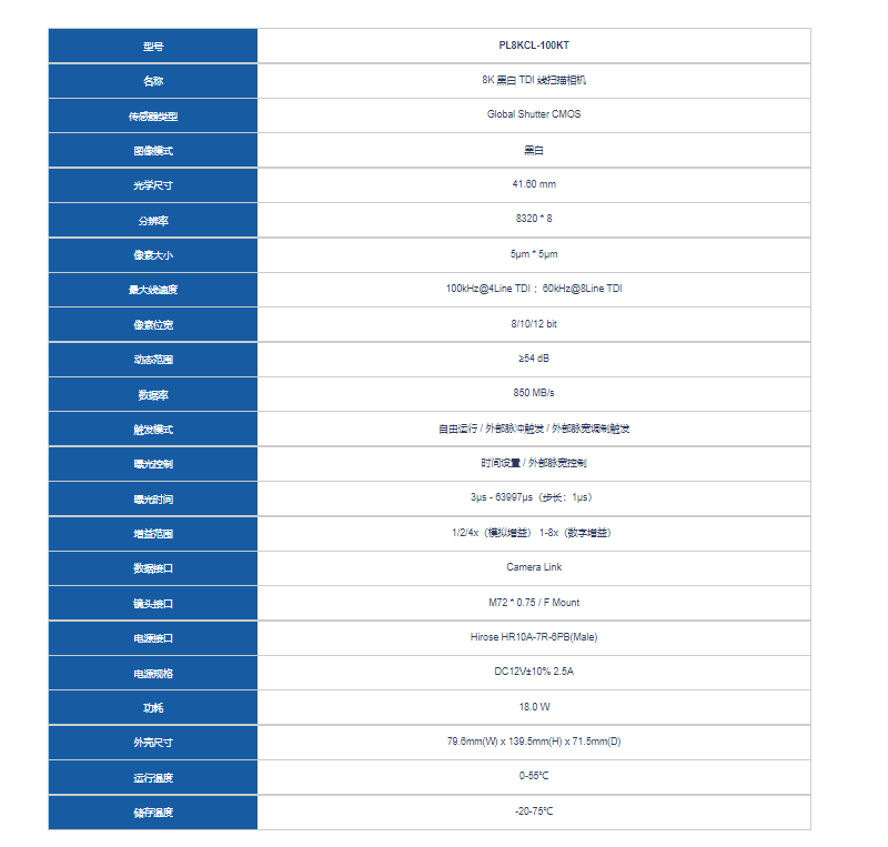 I-Tek埃科 PL8KCL-100KT 线扫描相机