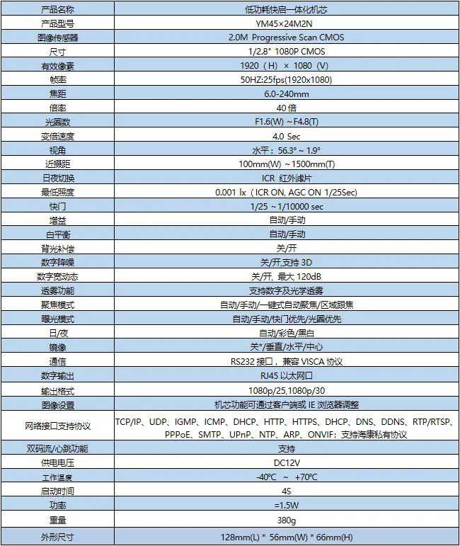 山田YAMAKO YM45x24M2N 网络一体化机芯