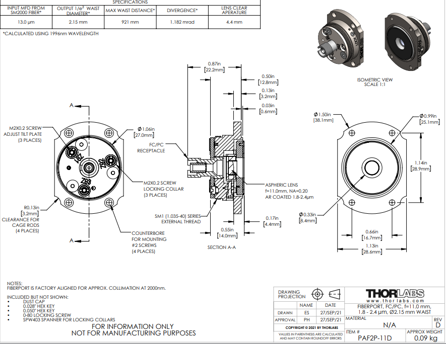 | PAF2P-15D | 15.3 mm | 13.0 µm | 3.00 mm | 1775 mm | 0.850 mrad | 5.0 mm | 0.16 | 1.8 - 2.4 µm | D-ZK3 | 0.87" (22.0 mm) |