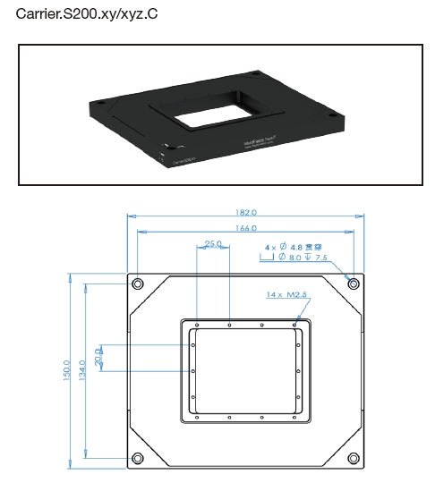 Carrier.S200.xy/xyz.C系列中空压电扫描台尺寸图