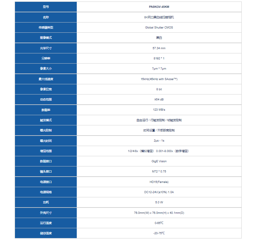 I-Tek埃科 PA8KGV-45KM 线扫描相机