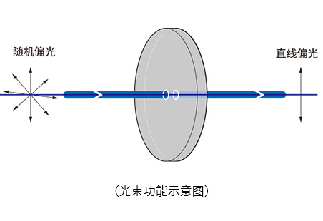偏振片由二向色性材料制成。当光波通过偏振片时,其中正交偏振分量之一被偏振片强烈吸收,而对另一分量则吸收较弱,因此可以用偏振片将自然光转换为线偏振光。由于偏振片对能量选择吸收,因此它不能应用在大功率场合。
