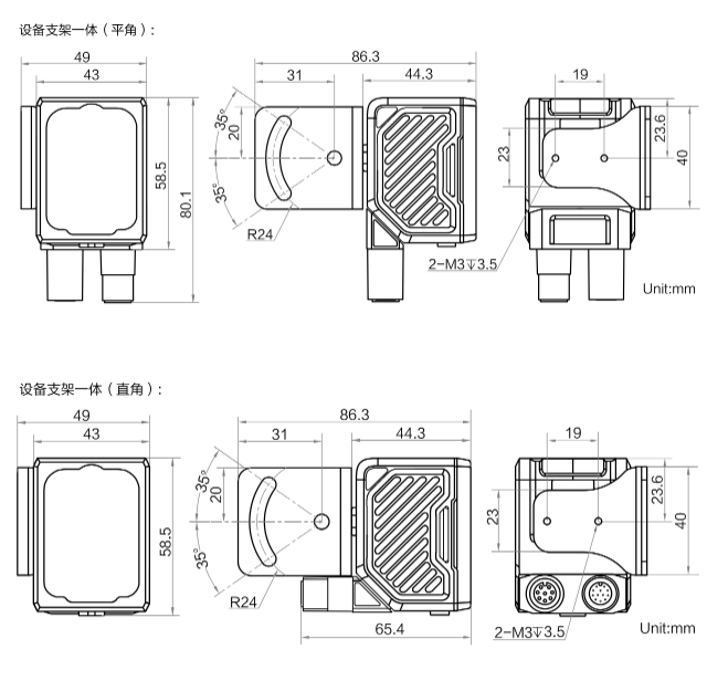 外形尺寸 | 平角:80.1 mm × 43 mm × 44.3 mm 直角:58.5 mm × 43 mm × 65.4 mm |