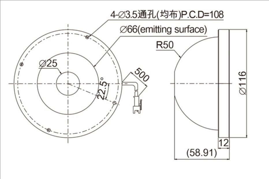 使用寿命 | 在本公司指定使用条件下,红光5万小时,白光3万小时,亮度降低到出厂值的50% |