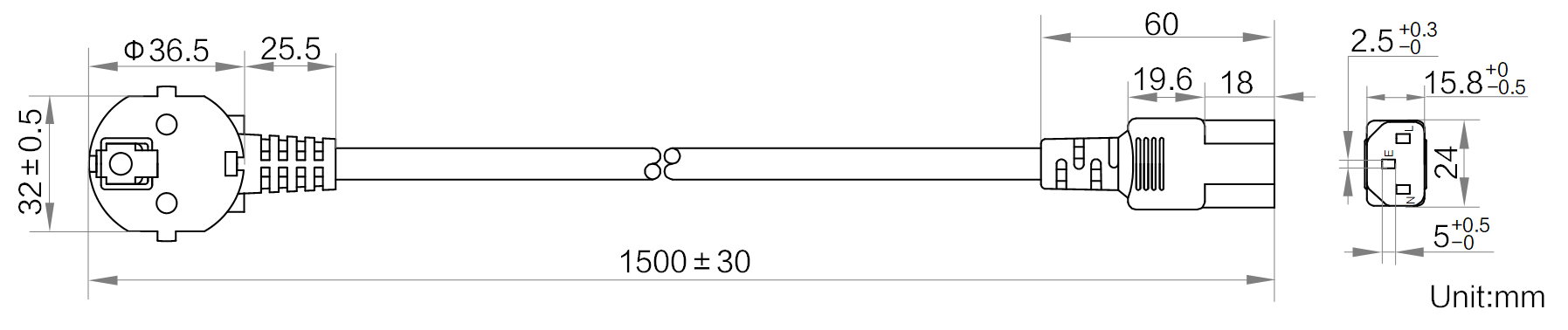 型号 | 型号 | 交流电源线_欧标_弯两插_C13_1.5米 |