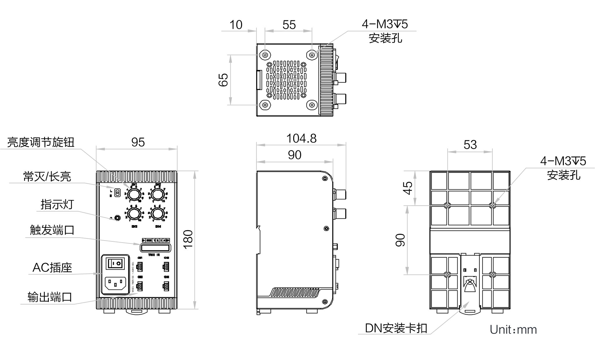 名称 | 光源控制器,模拟式,恒压输出,总输出功率200W,4通道,单通道最高输出72W,SMR-03V-BC接头,带触发 |