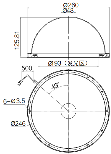 特殊工艺的半球形漫射壁,漫射光效均匀性好