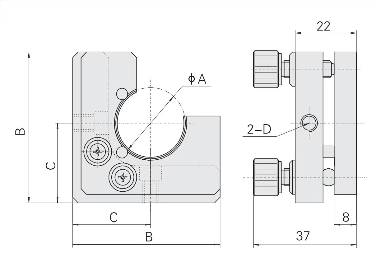 ΦA夹持直径 | 15 | 20 | 25 | 25.4 | 30 | 40 | 50 | 50.8 | 100 | 120 |