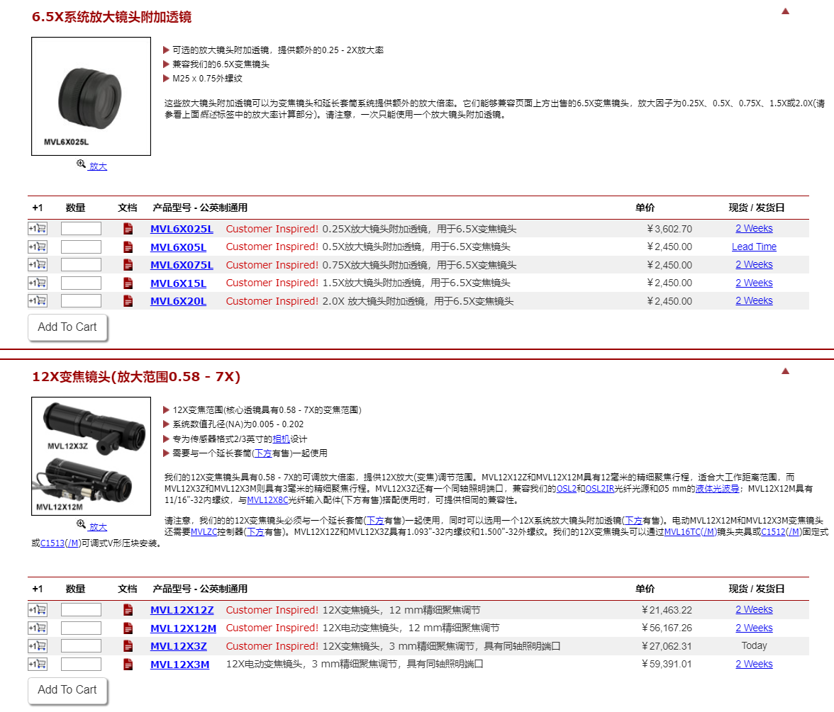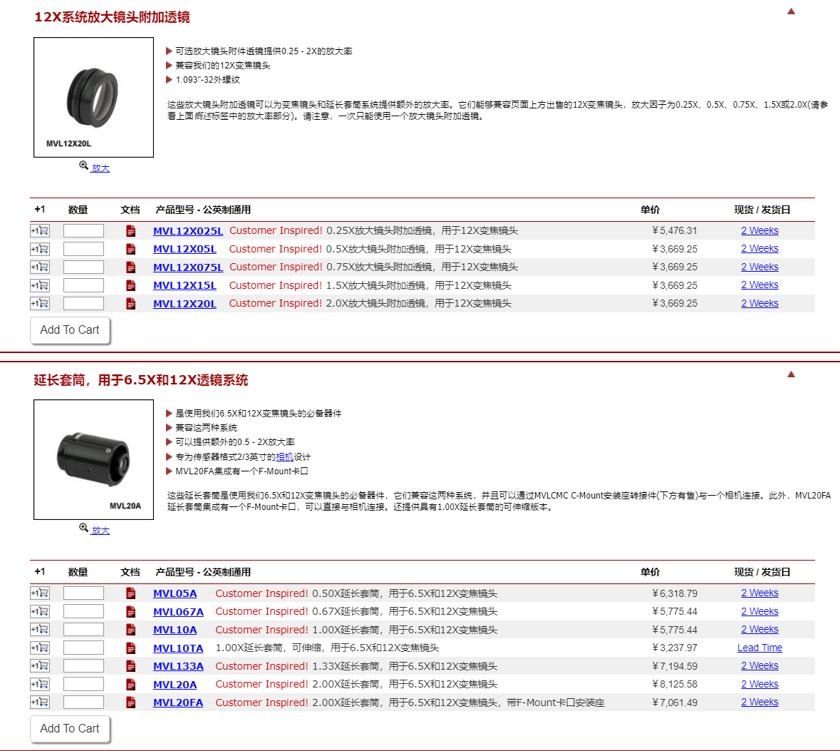 MVL10TA - 1.00X延长套筒,可伸缩,用于6.5X和12X变焦镜头