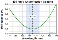 | Reflectance | < 0.25% @ 405 nm | Ravg < 0.5% within Coating Range | Ravg < 0.5% within Coating Range | < 0.25% @ 1064 nm | Ravg < 0.5% within Coating Range | Ravg < 1.0% within Coating Range | Ravg < 1.0% within Coating Range |