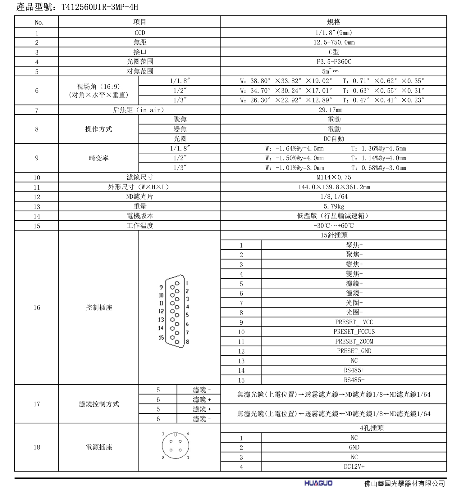 HUAGUO华国 T412560DIR-3MP-4H 监控镜头