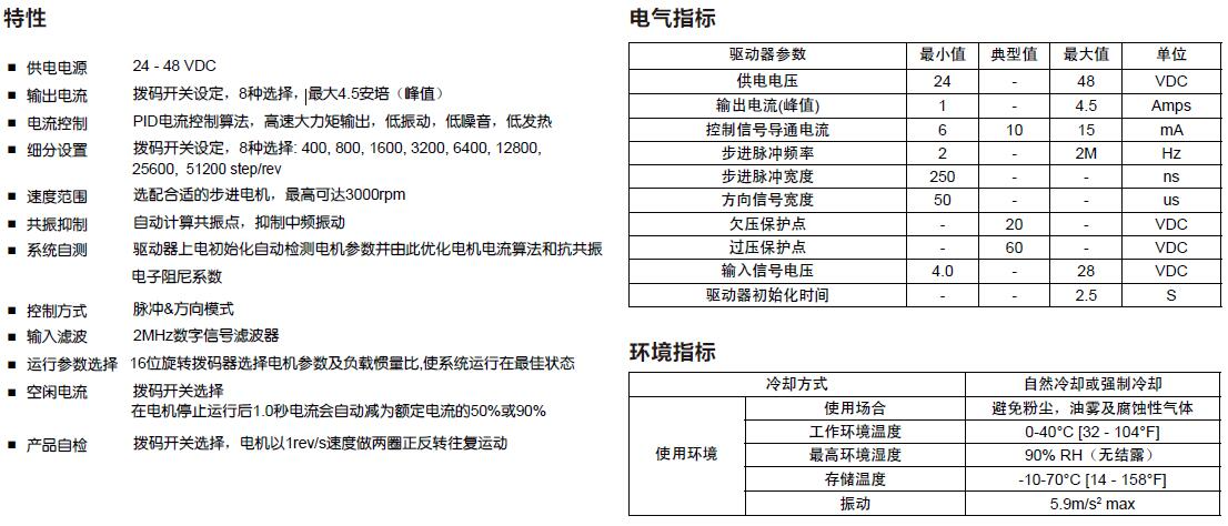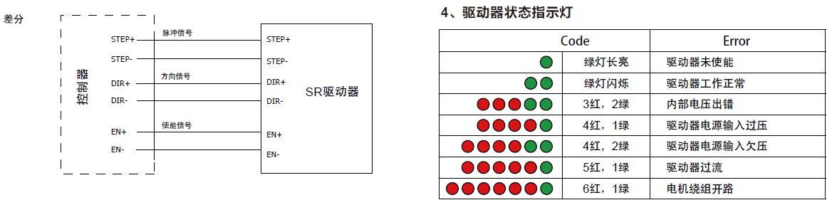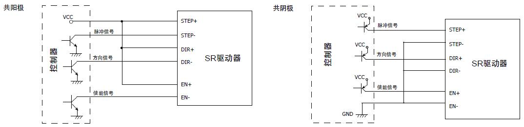 SR4驱动器有2个高速输入口STEP和DIR,光电隔离,可以接受5-24VDC单端或差分信号,*高电压可达28V,信号下降沿有效。信号输入口有高速数字滤波器,滤波频率为2MHz。