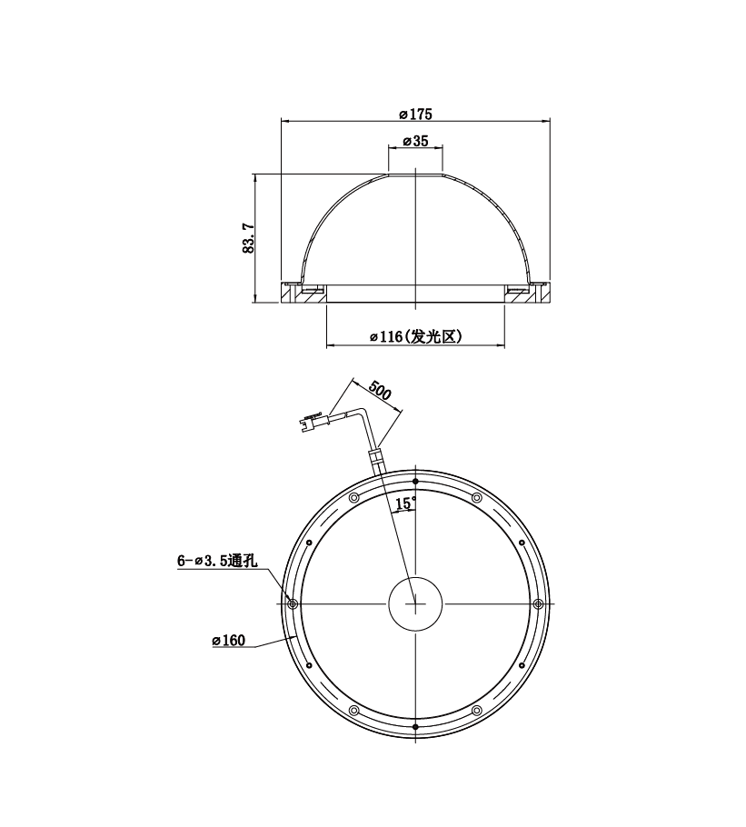发光区尺寸 | Φ116 mm |