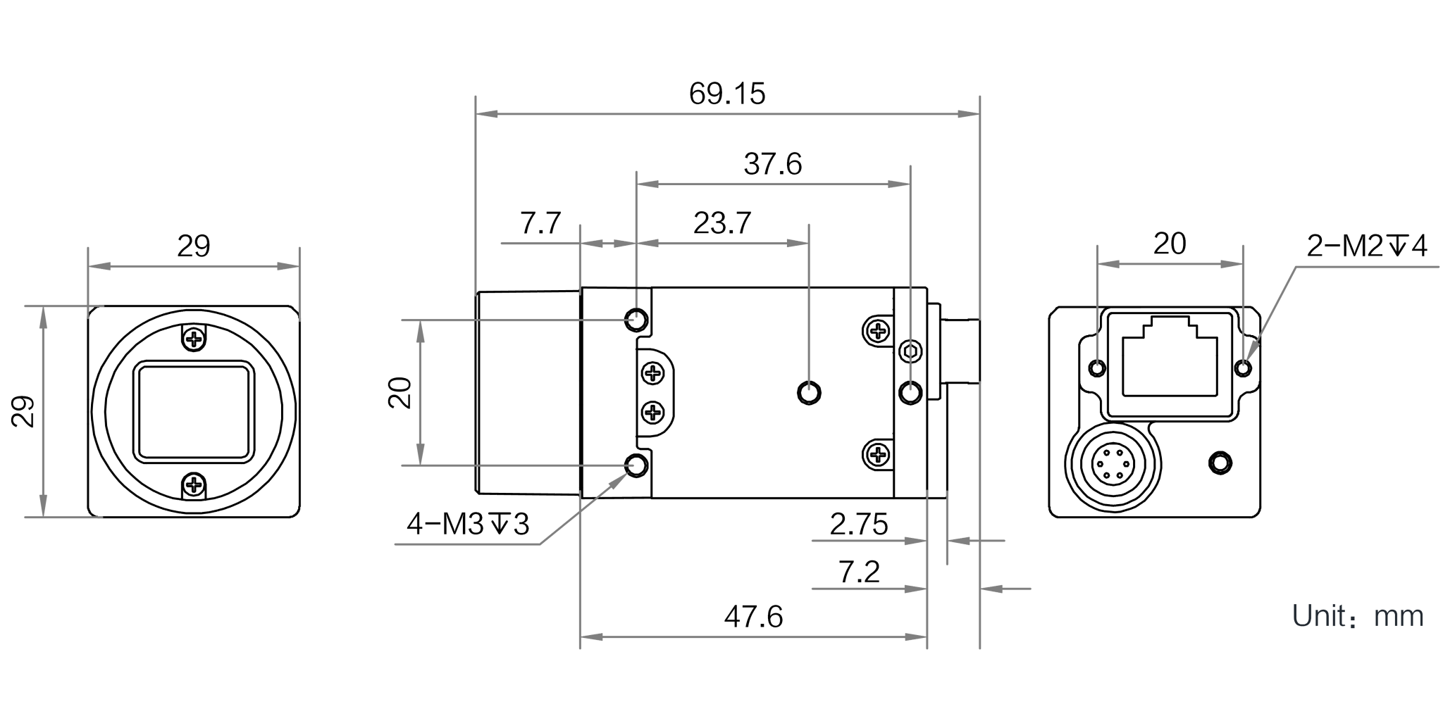 结构紧凑,外形尺寸 29 mm × 29 mm × 47.6 mm,适用于较小的安装要求
