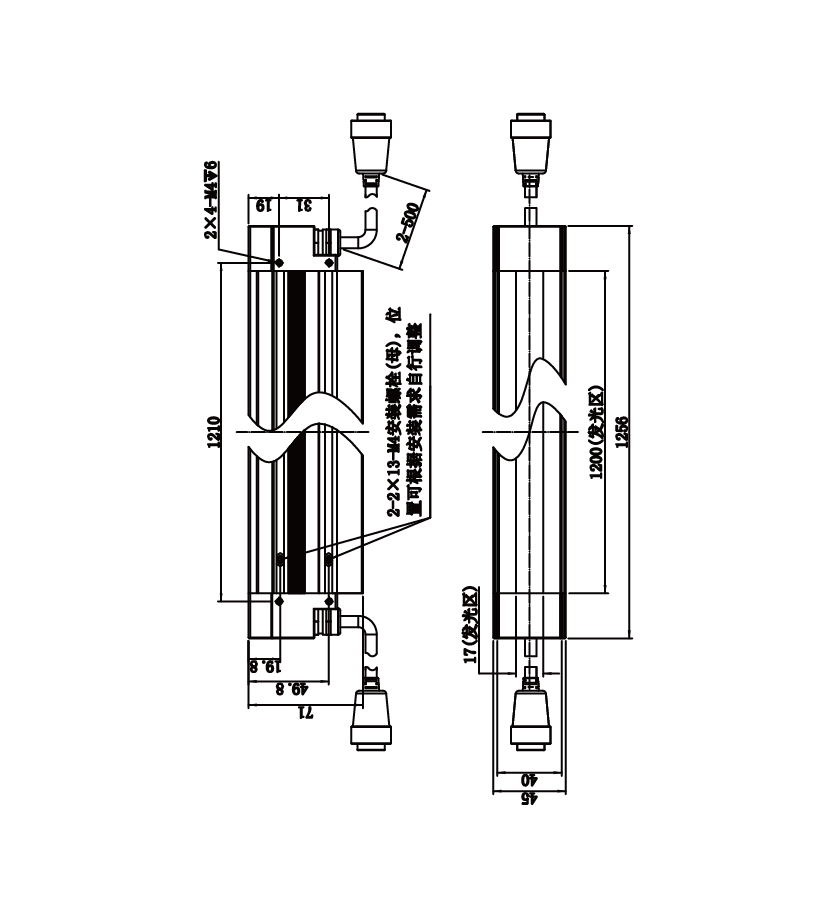 外形尺寸 | 1256 mm × 45 mm × 71 mm |