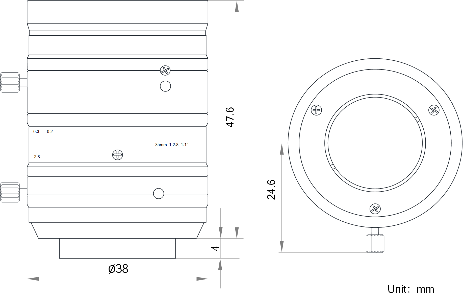 | 名称 | 35mm,F2.8,1.1",1200万分辨率,C接口镜头 |