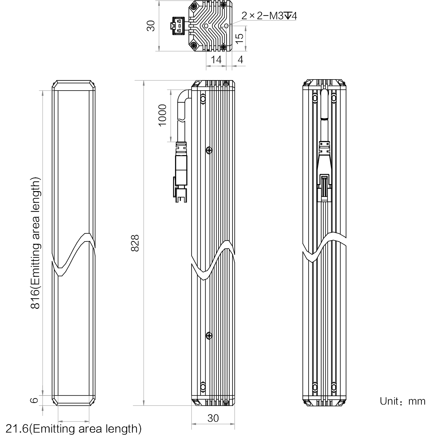 发光区尺寸 | 816 mm × 21.6 mm |