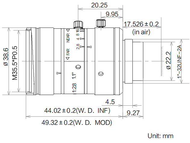 | 名称 | 25mm,F2.8,1.1",1200万分辨率,C接口镜头 |
