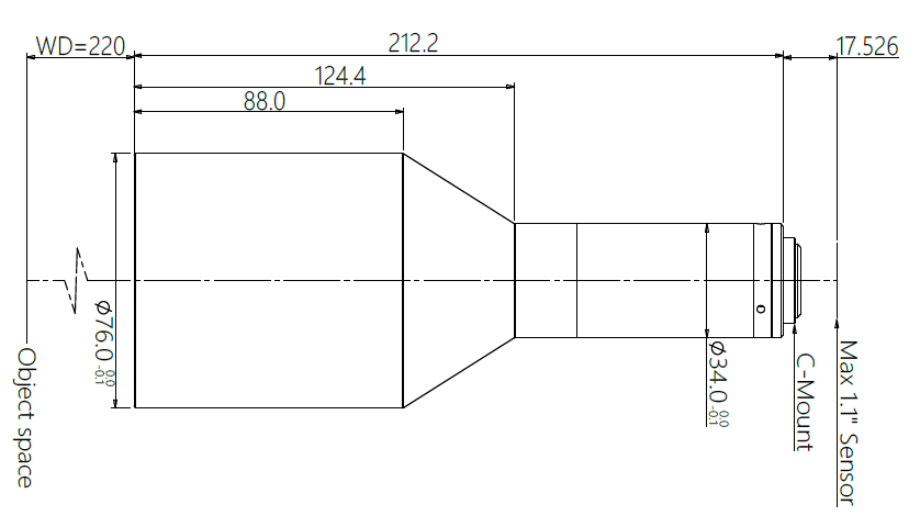 名称 | 220mm工作距,1.1",0.345x,不带同轴光接口 |