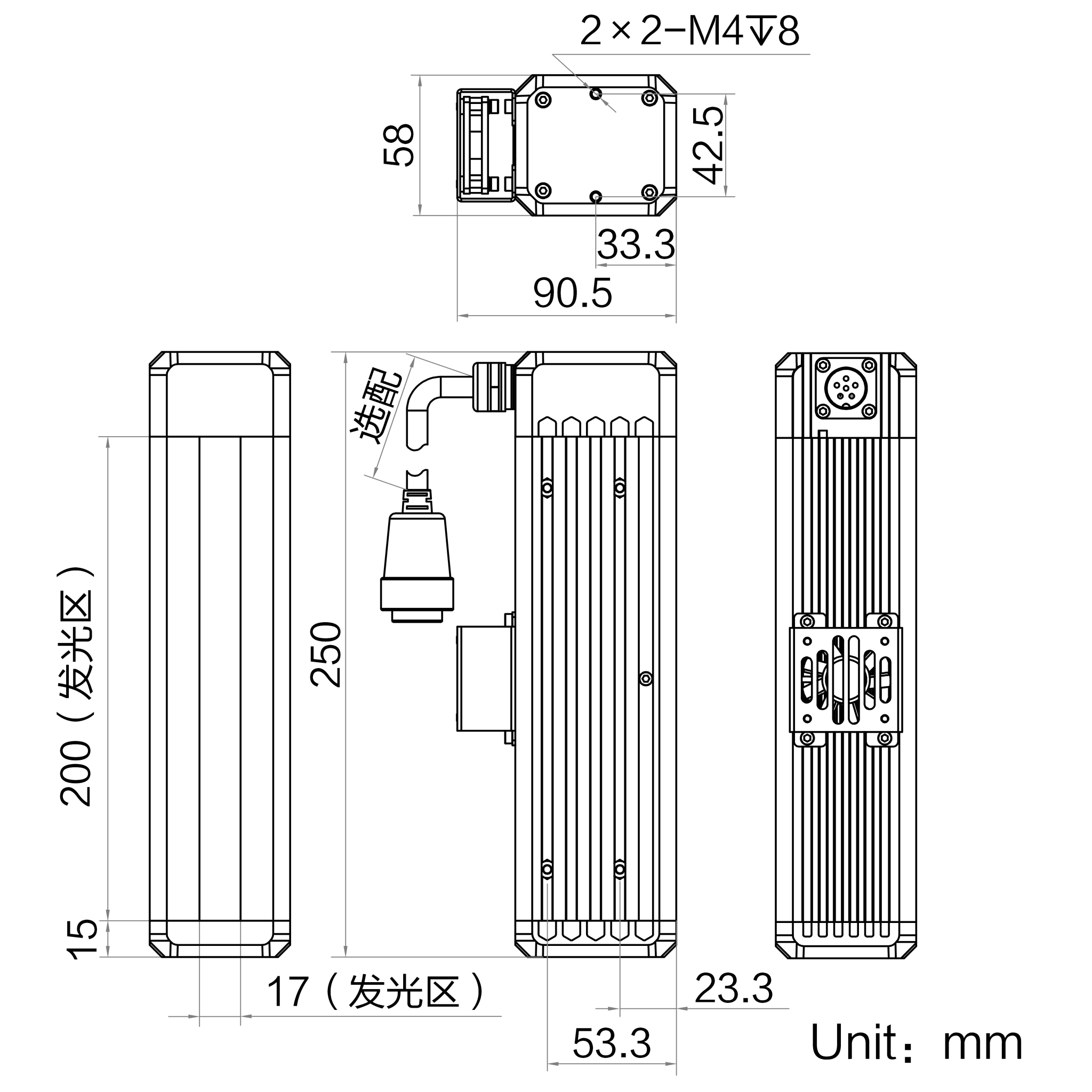 发光区尺寸 | 200 mm × 17 mm |
