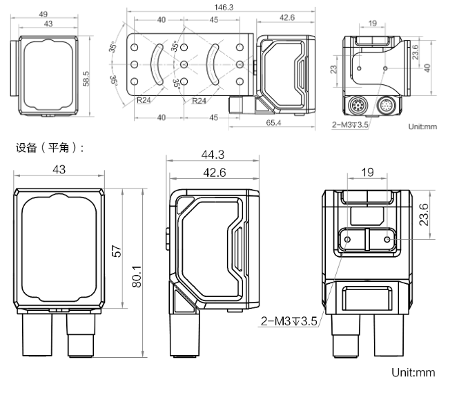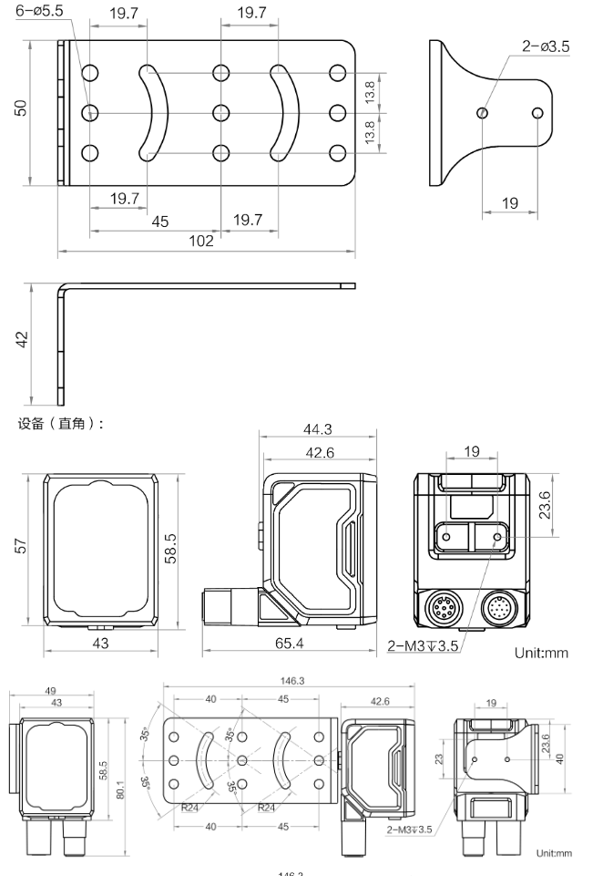 外形尺寸 | 平角:80.1 mm × 43 mm × 44.3 mm 直角:58.5 mm × 43 mm × 65.4 mm |
