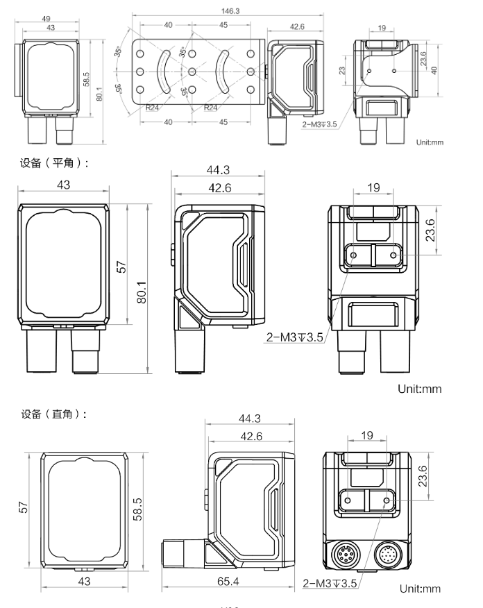 外形尺寸 | 平角:80.1 mm × 43 mm × 44.3 mm 直角:58.5 mm × 43 mm × 65.4 mm |