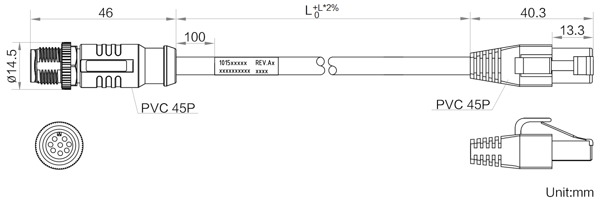 | 物理规格 | A端接口 | M12 8-pin A-code male |
