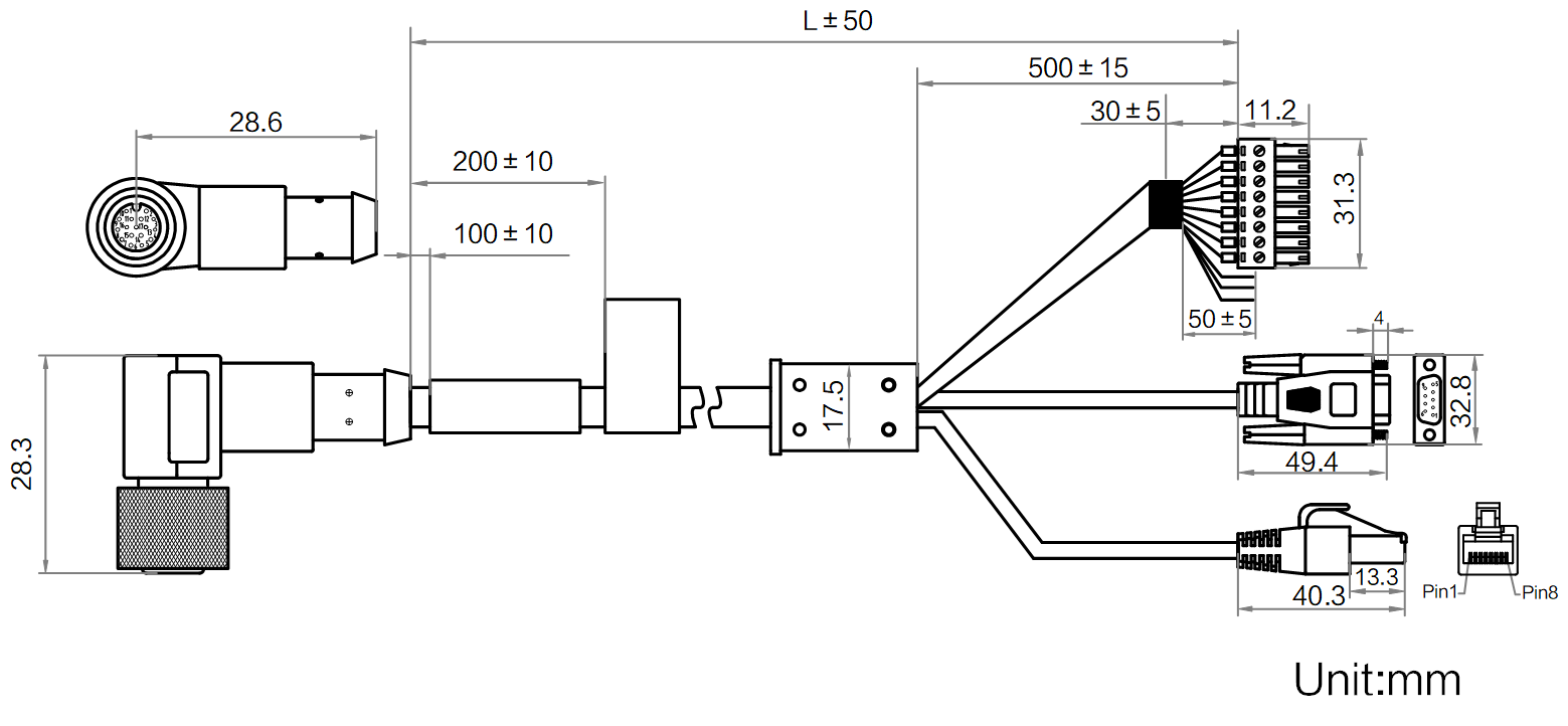 | 名称 | 一体线网口静态90°,3米,17pin转open/RJ45/DB9 |