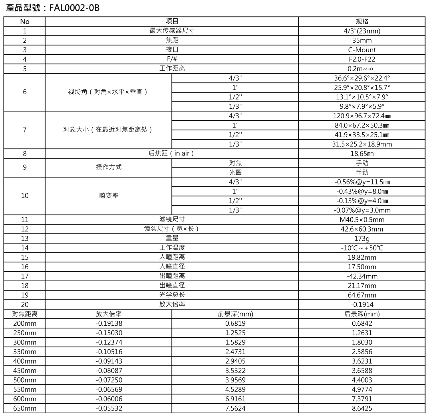 HUAGUO华国 FAL0002-0B FA镜头