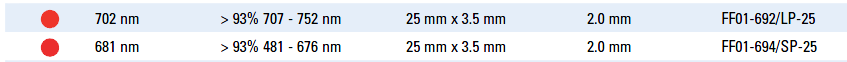 Semrock长波通/短波通滤光片选型表(Semrock):