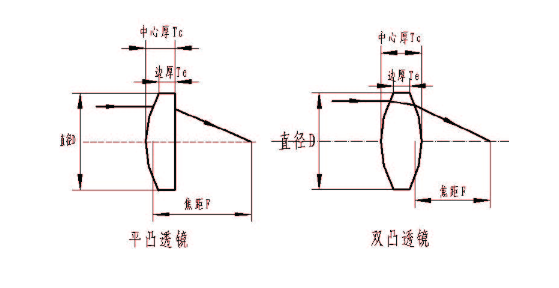 根据形状分为:平凸和双凸,根据材料分为K9 玻璃( 或BK7) 与石英;