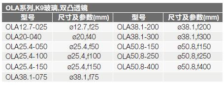 · 有从可见光到近红外用的BK7材料的透镜,和可用于350nm以下紫外光的高激光损伤阈值的合成石英透镜这两种类型。