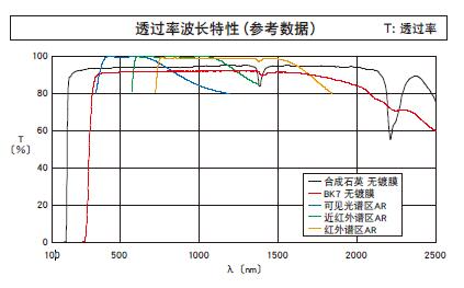 ▶由于无镀膜透镜的正面和反面都存在反射损失,所以透过率为90%左右。